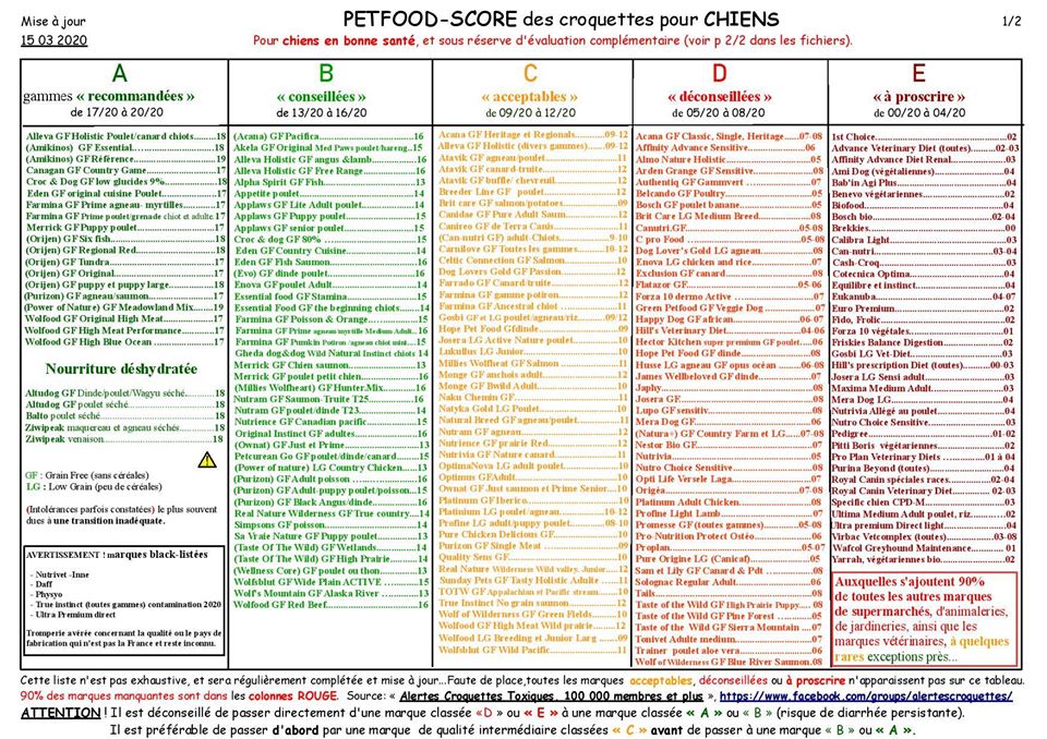 Petfood score pour chiens Alertes Croquettes Toxiques