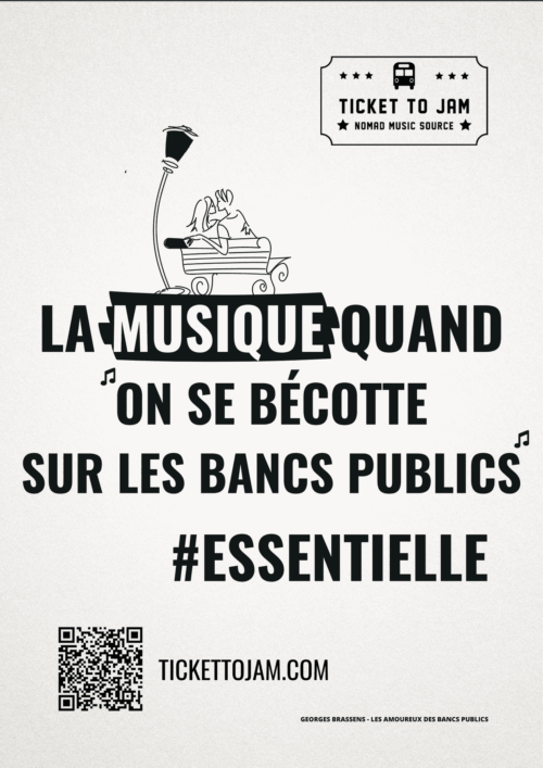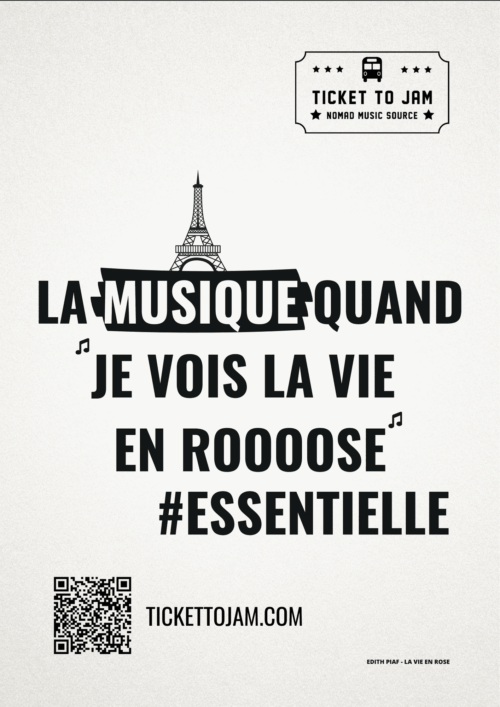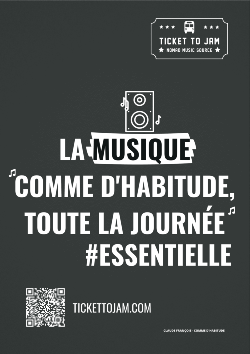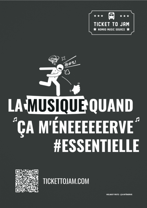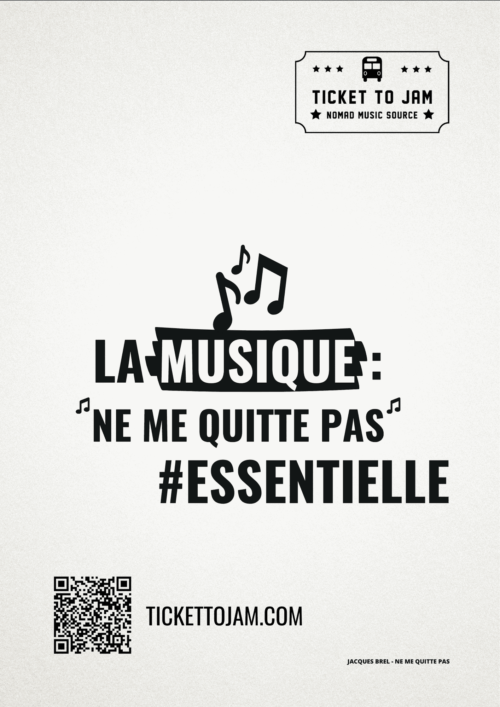 Aujourd’hui, alors que la crise du COVID19 perdure et laisse planer doutes et inquiétudes (du coup on a même féminisé son nom…), Ticket To Jam, le studio d’enregistrement itinérant made in Savoie, l’ancien bus scolaire équipé de panneaux solaire destinés à assurer une autonomie énergétique intégrale (sauf pour la scène), arrive à Bordeaux et lance une campagne d’affichage !